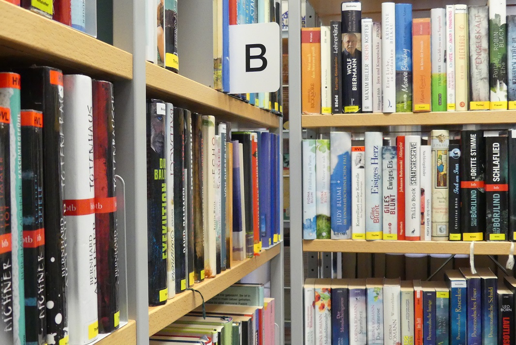 Im Erdgeschoss der Stadtbibliothek befindet sich die Belletristik der letzten 10 Jahre. Der Bestand wird laufend aktualisiert. Die einzelnen Titel sind durch Interessenaufkleber gekennzeichnet und ermöglichen so eine schnelle Suche. Es werden alle Themen abgedeckt, wobei vor allem Krimis & Thriller sowie historische Romane derzeit bei den Leserinnen und Lesern besonders beliebt sind